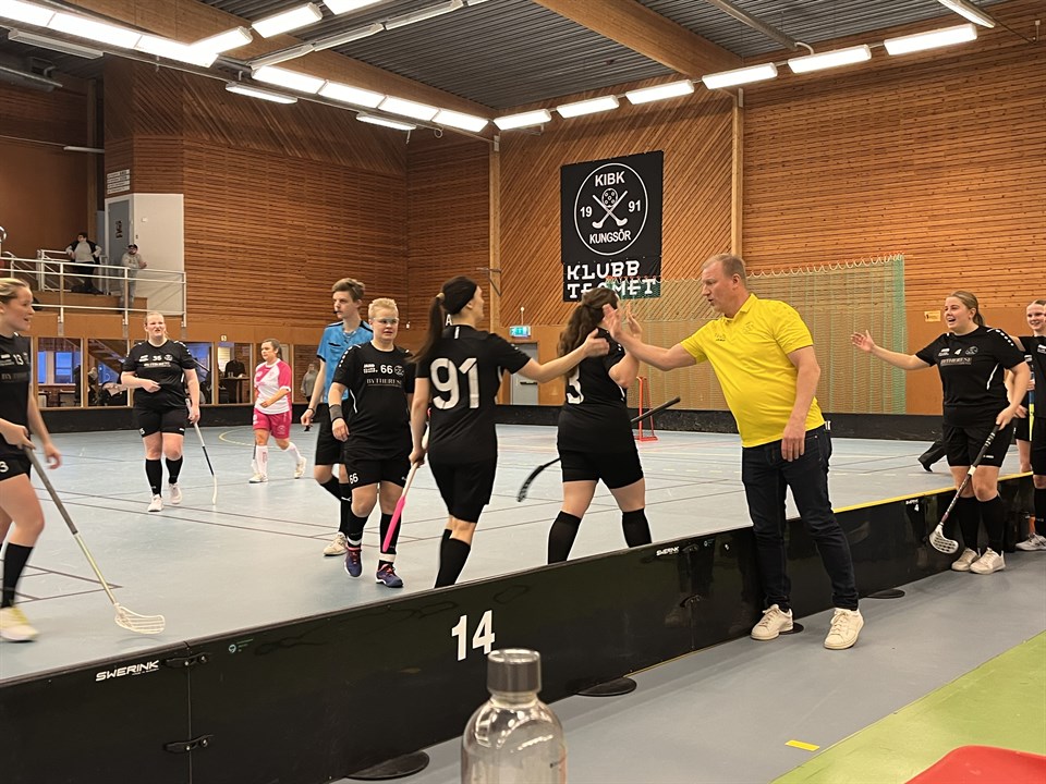 Spännande match i sporthallen idag! Kungsörs damer tog emot Sala IBK. Gästerna var ofina nog att dra dit 0-1 redan efter 37 sekunder, de kunde väl väntat till hemmaspelarna i a f vaknat.... 1-2 efter första perioden, med ett litet övertag för gästerna. I andra perioden tog Kungsör över bollinehavet och reducerade till 2-2 i 4:e minuten. Resultatet stod sig perioden ut. Så helt jämt på tavlan inför tredje, med en period till vardera lag. I tredje perioden var det mycket bollinnehav för Kungsör, men inga riktigt vassa chanser skapades under de först 10 minutrarna. 13.04 skickade Sala in 2-3 från kanten via ett Kungsörs-ben. Det fick fart på kungsörstjejerna, som satte full fart framåt och pangade in 3-3, 14.55 och 4-3, 17 sekunder senare. Sala tog time-out och satsade med att rycka målvakten sista minuten. Det utnyttjade Kungsör och punkterade matchen 19.54 genom att göra 5-3 i öppen kasse. Ser man till bollinnehav och spel, så vann Kungsör till slut rättvist, då de hade spelövertaget de två sista perioderna. Målen Kungsör; Amanda 2, Sara, Lizette och Elza.